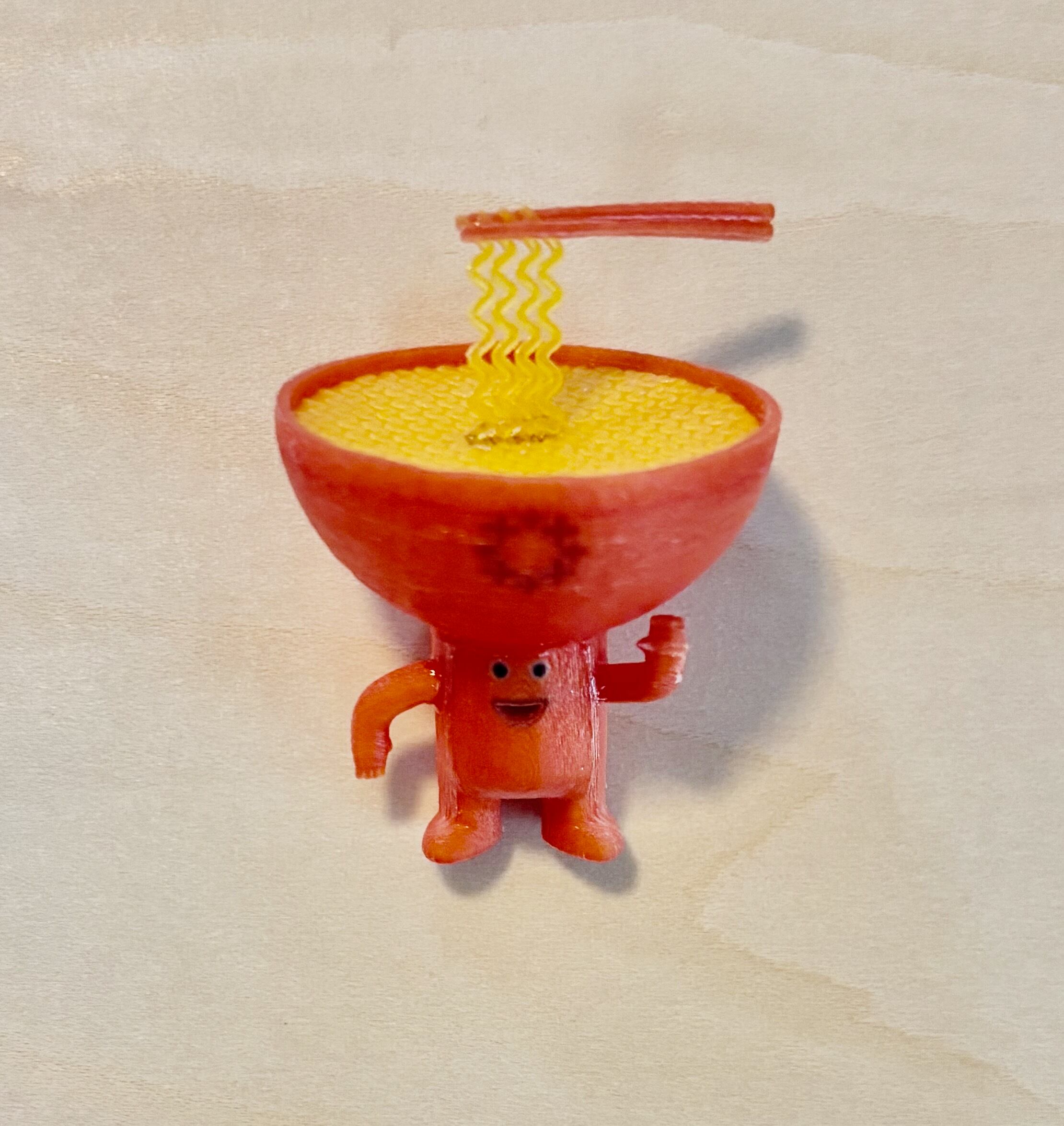 デタドンの3Dフルカラープリントによるフィギュア・Sサイズ(丼の直径2.5cm)です。バランスの関係で自立できません。受注生産のため2週間程度の納期が必要になります。